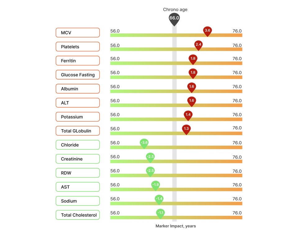 - Tracking Changes: Monitor fluctuations in your blood age over time and assess the impact of interventions.